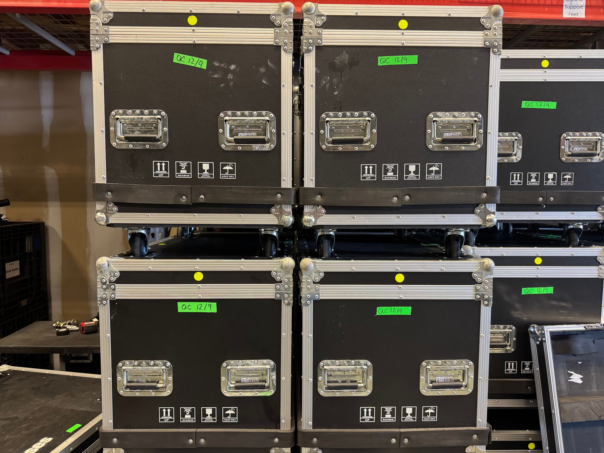 - Audio: Consoles booted, faders and encoders exercised, speakers and amps